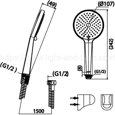 ZH032(HM) ฝักบัวพร้อมสาย 3 ฟังก์ชั่น