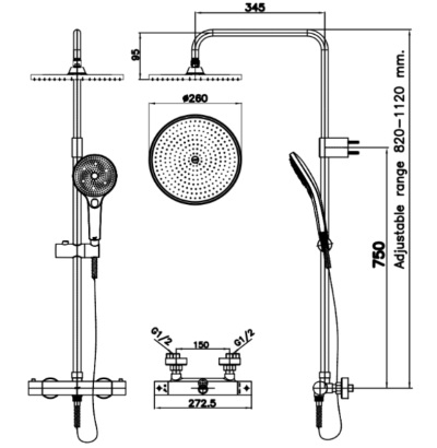 CT5105W ก๊อกผสมยืนอาบน้ำพร้อมวาล์วควบคุมอุณหภูมิ