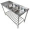 KK-01-021H-63 ชุดอ่างซิงค์ แบบ 2 หลุมมีที่พัก SUS304 หนา 0.6 พร้อมท่อน้ำทิ้ง+คลิปล๊อค 1,200x500x180 มม